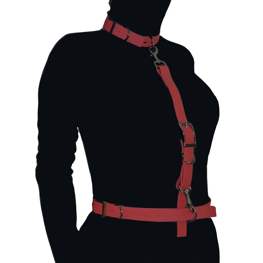 Ta uprząż nie tylko pięknie prezentuje się na ciele, podkreślając krągłości i linię talii, lecz przede wszystkim daje możliwość pełnego dopasowania i kontroli. Dzięki regulowanym zapięciom możesz idealnie dostosować ją do sylwetki, zapewniając stabilność, bezpieczeństwo i maksymalny komfort, nawet podczas długotrwałych sesji BDSM. Doskonale sprawdzi się zarówno w roli stylowego dodatku do erotycznej stylizacji, jak i jako narzędzie służące do realnego krępowania, prowadzenia lub budowania napięcia w scenach dominacyjnych.